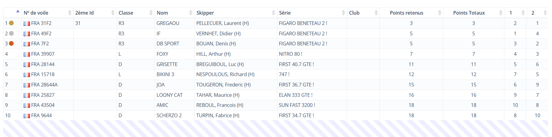 • Classement général provisoire Croiseurs