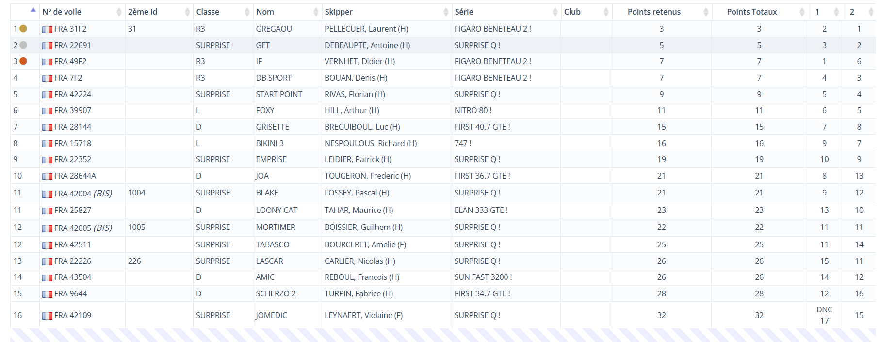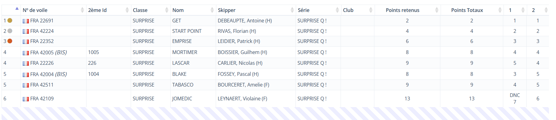 • Classement général provisoire Croiseurs et Surprises